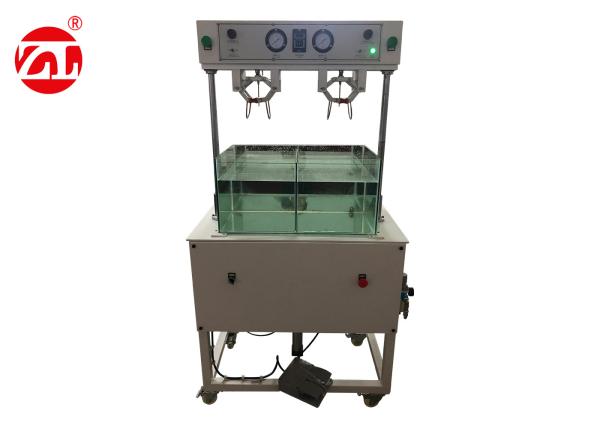 The machine seals and tests the rubber surface of the shoe (boot) through inflation and soaking processes. During the test, the test item is sealed with a local pressure device and the test item is immersed in the water to the depth specified by the device. At the same time, the test specimen is filled with air under constant pressure and bubbles form as soon as the test specimen penetrates water. Test the time (seconds) that is automatically attached to the surface with the sample.